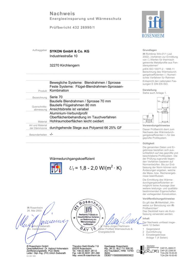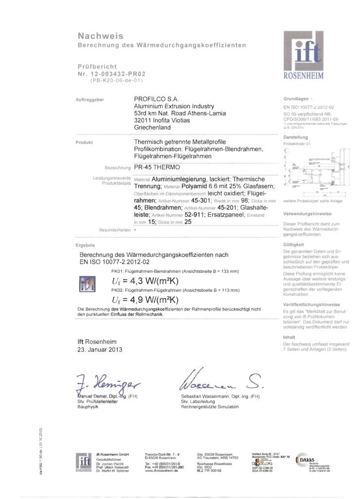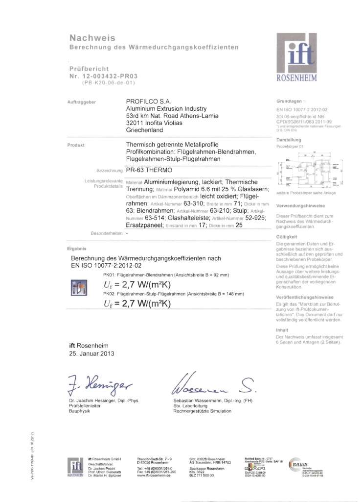 Coeficientul de transfer termic: Uf = 2.7 W/m2K